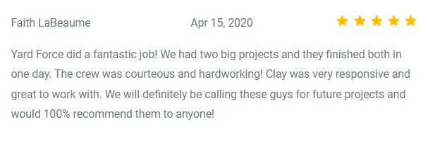 The Yard Force came to my home to build a retaining wall with stairs. Communication was regular and clear. The work was done on and within the dates that we were told it would be. I was invited out to discuss progress and preferences throughout the build. The wall was built very well and details were better than I had expected. Mark and Clay were the main guys on site each day and they clearly knew what they were doing. I would recommend them any day.Reply